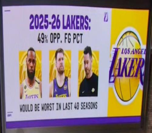 而49%也是湖人队史过去40年来在“对手命中率”这方面的最差表现。