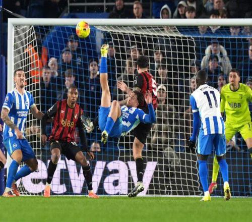 英超第22轮最后一战,布莱顿主场1比1伯恩茅斯。客队第32分钟由阿明·阿德利造点,马库斯·塔弗尼尔罚中。第90+1分钟,范赫克摆渡,18岁希腊前锋科斯图拉斯倒勾绝平。 本轮英超,分出胜负的6场比赛,有4场是排名较低的球队战胜排名较高的:曼联2比0曼城、利兹联1比0富勒姆、热刺1比2西汉姆、维拉0比1埃弗顿。4场平局中,有3场双方排名差距很大:利物浦1比1伯恩利、森林0比0阿森纳、狼队0比0纽卡。 目前的英超,没有球队处于连胜之中。英超是平的,绝非虚言。