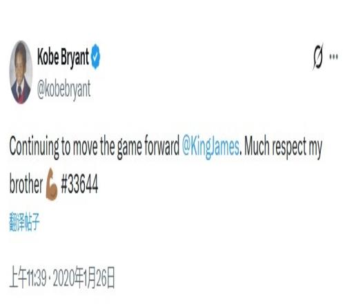6年前的今天:科比人生最后一条推特恭喜詹姆斯总得分超越自己
