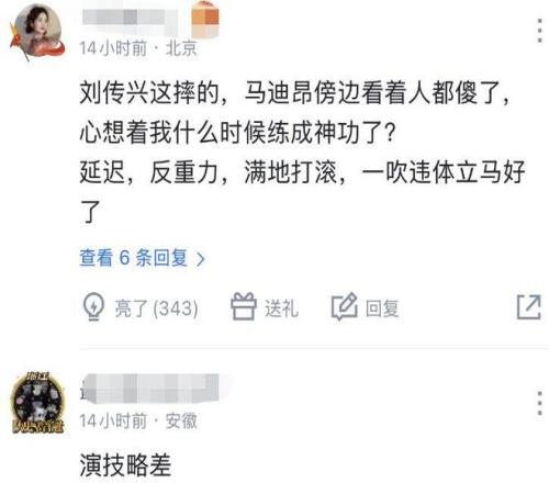 其实通过慢镜头来看,当时马蒂昂并没有使太大的力,但刘传兴的表演格外夸张,有球迷调侃道:“刘传兴这摔的,马迪昂旁边看着人都傻了,心想着我什么时候练成神功了?延迟,反重力,满地打滚,一吹违体立马好了”、“演技略差”、“违体一吹妙手回春”。