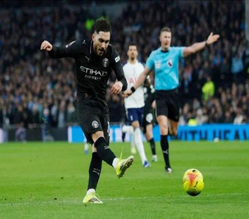 在对阵热刺的英超联赛中,谢尔基的低射帮助曼城首开纪录。